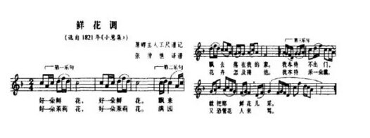 1837年,《茉莉花》的曲谱见于木刻本的《小慧集》中,原名为《鲜花调》。这是中国最早可见的《茉莉花》曲谱,后来被江苏明清俗曲专家张仲樵翻译成简谱。