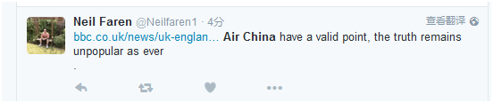 网友Neil Faren:中国国航的观点是正确的,但事实依旧不受某些人欢迎。