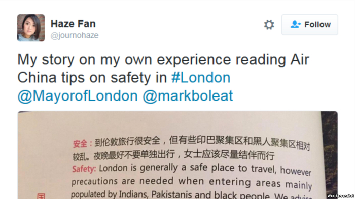 原标题:中国国航伦敦旅游提示涉“种族歧视”?外国网友:不应被过分解读