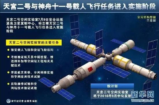 按计划,“天宫二号”空间实验室发射升空后,将变轨进入高度约380公里的运行轨道,进行在轨测试。“神舟十一号”载人飞船10月中下旬发射前,“天宫二号”空间实验室进入高度为393公里的近圆对接轨道,等待交会对接。