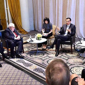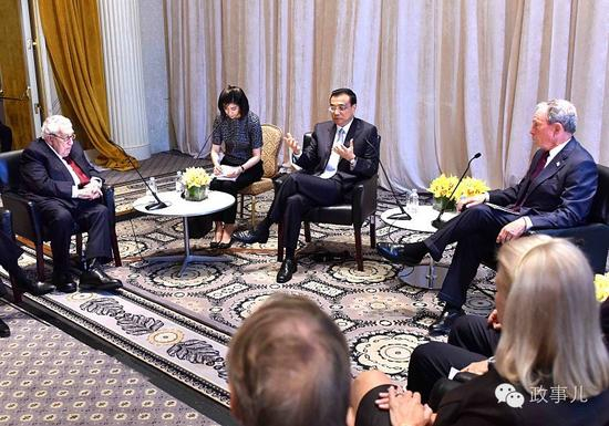 当地时间20日上午,国务院总理李克强在纽约华尔道夫饭店主持召开座谈会,与17位美国经济金融界、智库、媒体重要人士,就中美关系及经贸合作等共同关心的问题交流互动。
