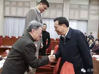 2015年1月,李克强在国务院与篮球运动员姚明等10位代表座谈后,还笑着与姚明握手,说:“你就是没被束缚,所以长得这么高。”