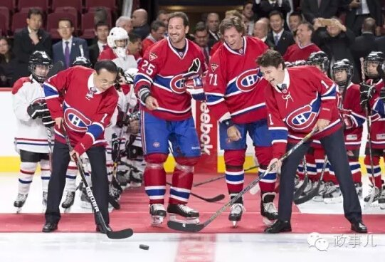 当日上午,李克强与特鲁多来到蒙特利尔加拿大人冰球队主场、可以容纳2万5千名观众的贝尔中心,观看当地华裔青少年的冰球表演赛,并兴致勃勃地为小球员们开球。