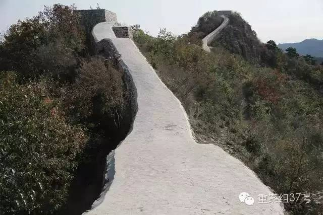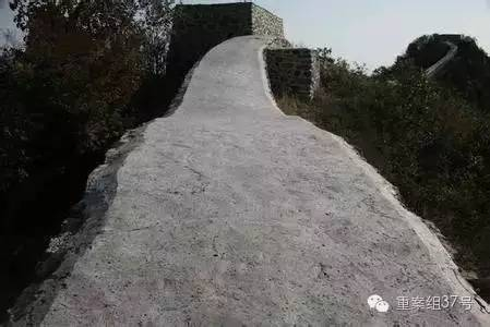 ▲修缮后的小河口长城,这一段猛看上去有点像水泥路。 网友供图链接