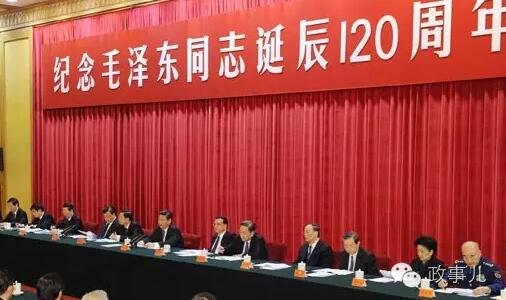 2013年12月26日,中共中央在人民大会堂举行座谈会,纪念毛泽东诞辰120周年。习近平出席并发表讲话,李克强、张德江、俞正声、王岐山、张高丽出席,刘云山主持。
