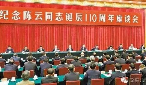 2015年6月12日,中共中央在人民大会堂举行座谈会,纪念陈云诞辰110周年。习近平出席并讲话,李克强、俞正声、王岐山、张高丽出席,刘云山主持。张德江彼时正在外访期间。