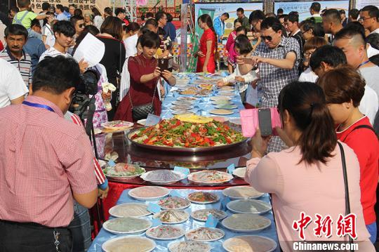 中新网托克逊10月2日电 (戚亚平 李靖海)10月2日,为期6天的第四届新疆(托克逊)拌面文化旅游节在托克逊县开幕,直径1米的超大份拌面和54种特色拌面齐亮相,让人垂涎欲滴。