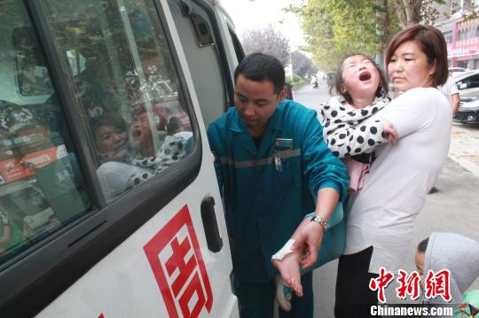 女孩获救后,被送上了救护车。 付泉 摄
