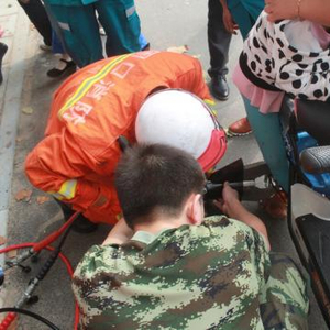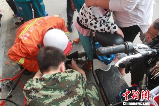 电动车“咬”住女孩脚 消防切开支架成功救援