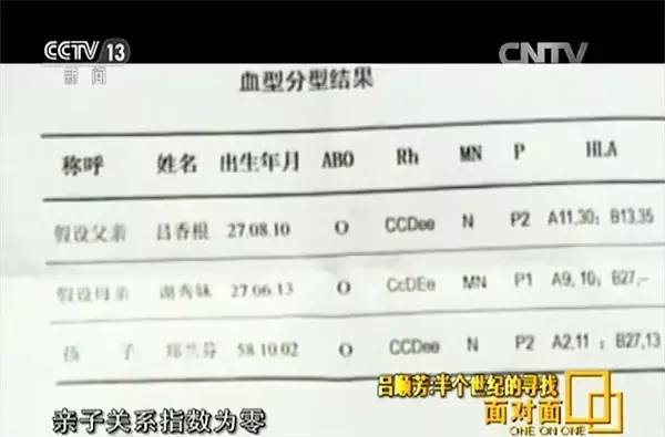 这期节目让吕顺芳全家感慨万千。吕家人都觉得,其中一个名叫郑兰芬的特别像当年送出去的妹妹。2000年8月,吕家人和郑兰芬相约做了亲子鉴定。最终的鉴定结果显示,郑兰芬不是吕顺芳的亲生妹妹。