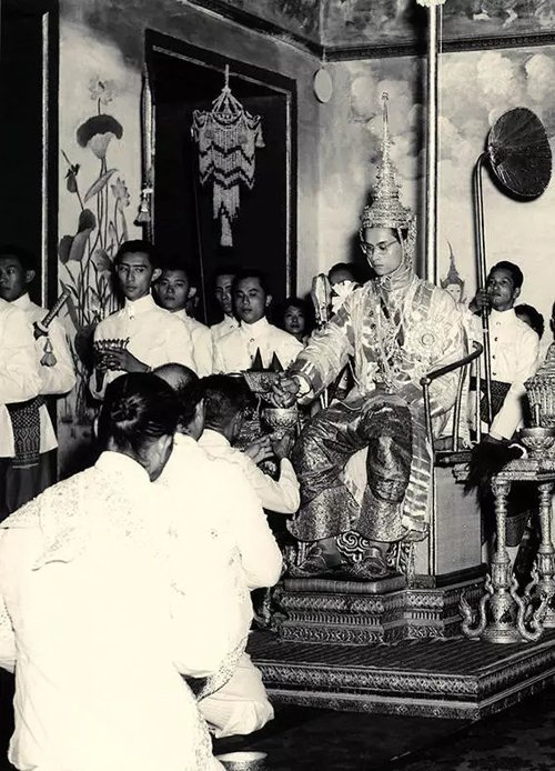1950年5月5日,普密蓬国王在位于曼谷的宫殿内完成加冕仪式。