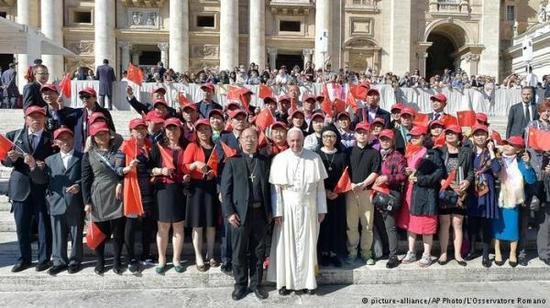 据“德国之声”15日援引天主教亚洲通讯社报道,方济各于10月5日公开接见时段,首次接见了一位来自中国大陆的主教,并和其他前来朝圣的教友合照。