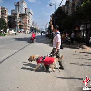 中新网昆明10月20日电 (陈静)“今天刚好是胖虎在昆明‘上岗’的第40天。”20日,昆明市盲哑学校的老师彭斌,一边在导盲犬胖虎的帮助下顺利避开路上的障碍,一边得意地告诉记者,“它现在已经是小明星啦!我在路上经常听到市民喊它的名字。”