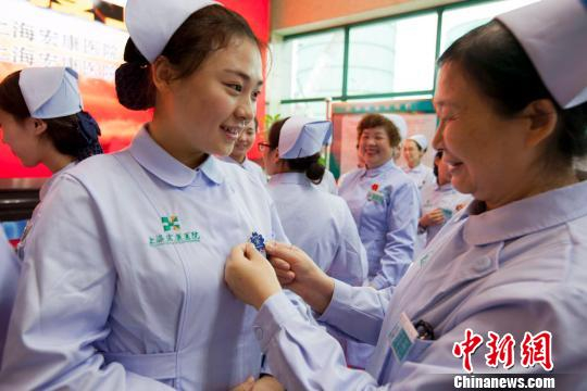 当年被评为护士新星者被授予蓝色勋章,连续两年以上获得护理之星者,授予红色勋章。 邵竞 摄