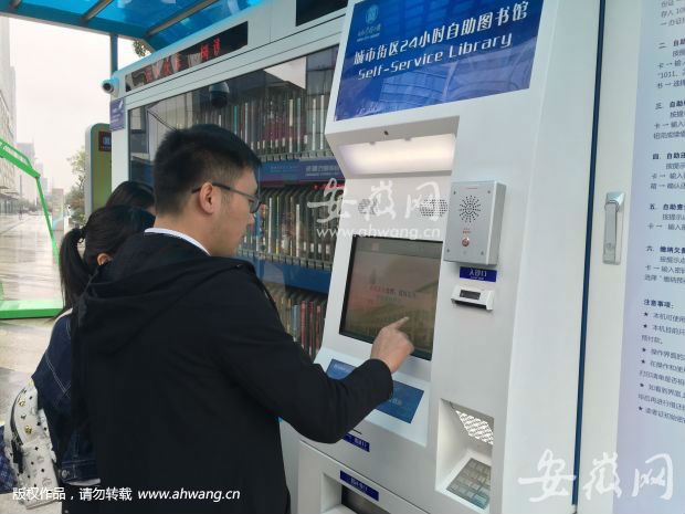合肥市城市街区24小时自助图书馆,由自助图书馆服务机、物流系统、中心服务系统和监控系统组成,它提供完全自助式服务,整个书架容量为400册。自助图书馆内有三层书架,每本书下方都有编码。市民缴纳100元押金,就可以直接刷二代身份证办理读者证,并免费借阅图书了。
