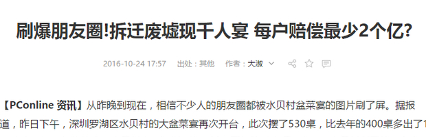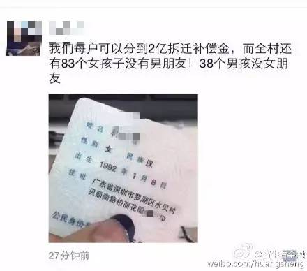 深圳村庄拆迁每家赔2亿 83个姑娘未嫁? 假的!
