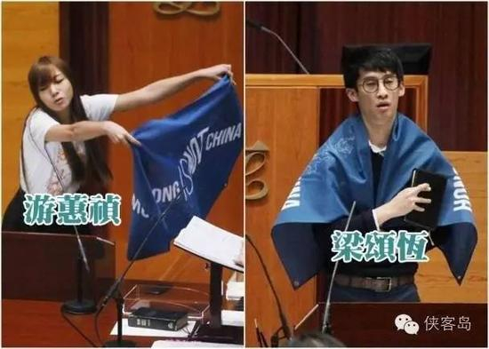 我们先简单勾勒一下这件事:按照基本法的要求,所有选举出的立法会候任议员,都需要经过宣誓环节认定,成为正式议员。但在前些天的宣誓环节中,梁颂恒、游蕙祯两名候任议员在这一环节中,身披或手持“Hong Kong is not China”(香港不是中国)的旗帜,并发表诸如把China读成“支那”、把“Republic”读成“Re-Fucking”等辱华言论,引发全球华人愤怒。香港立法会主席梁君彦也当场裁决二人宣誓未获通过。
