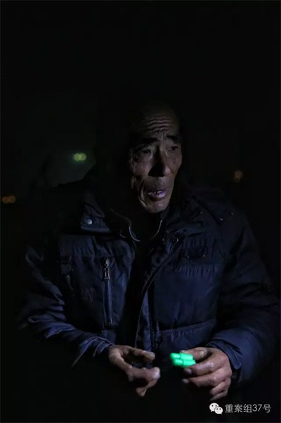 ▲11月8日晚,疑坠井男童的爷爷在现场守候,他手上拿着孩子失踪前还拿在手上的玩具。 新京报记者 彭子洋 摄