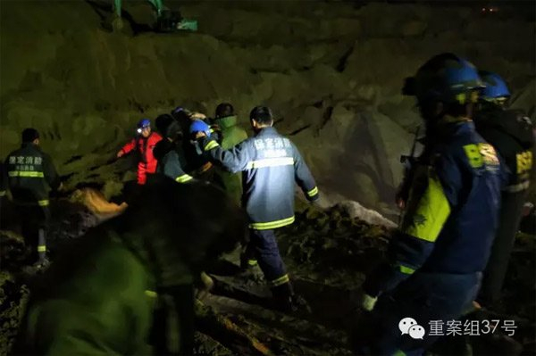 直隶救援队队长王小东告诉重案组37号(微信ID:zhonganzu37),现场目前有三支救援队,分别是直隶救援队、蓝天救援队和及时雨救援队。蓝天救援队主要负责外围警戒,及时雨救援队配合直隶进行挖掘工作。