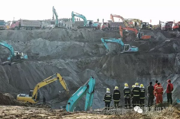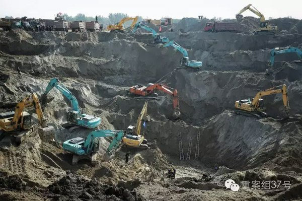 沿着大坑向上看,救援车、急救车、来回运送堆土的卡车,穿梭不息。