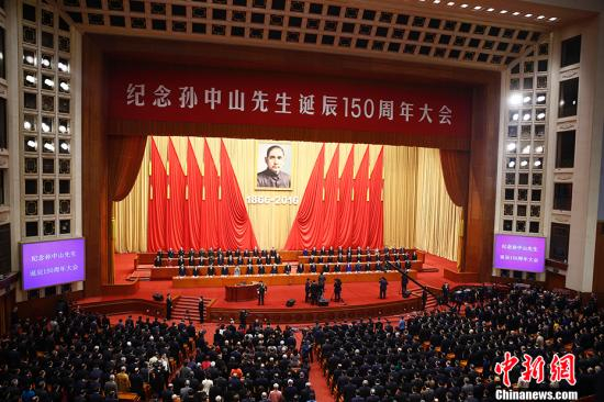 11月11日,纪念孙中山先生诞辰150周年大会在北京人民大会堂举行。中新社记者 盛佳鹏 摄