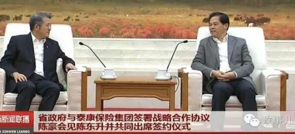 在今年,泰康保险还与四川、青海、山东、河南等至少四个省签署有战略合作协议,各省省长都与陈东升一起出席并见证签署仪式。