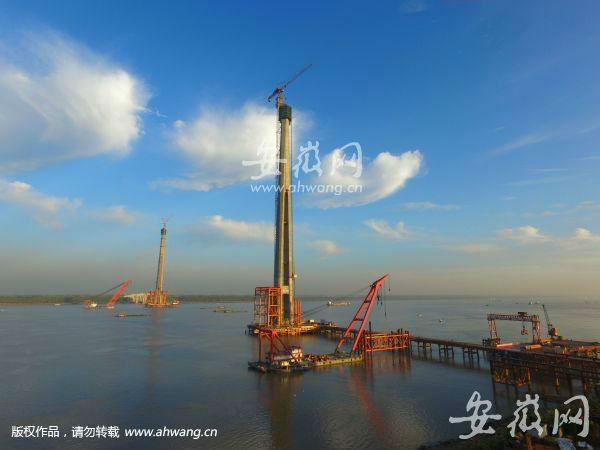 芜湖长江二桥南主塔封顶 明年年底大桥有望建成通车