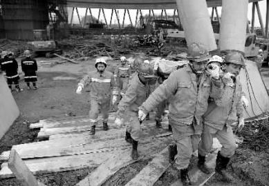 24日早上7时40分许,江西丰城电厂三期在建冷却塔施工平桥吊发生倒塌,造成横版混凝土通道倒塌。记者在现场发现,内径125米、高70多米的在建冷却塔内,施工平桥吊坍塌在地上,钢筋扭曲叠杂在一起。救援人员正用液压剪等工具,剪断纠缠在一起的钢筋,清理现场,搜救仍被压在底层的工人。11时40分左右,陆续有十五六具遇难者遗体从坍塌现场抬出。死亡人员主要来自河北、湖北两省。