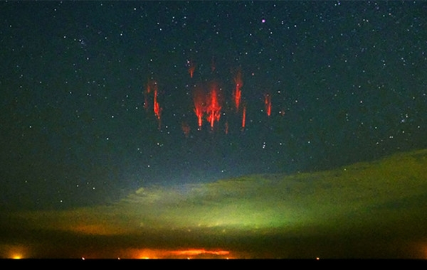 天空闪现红色光芒不一定就是“大难临头”的象征,有日本摄影师在茨城县鉾田市的近海上空拍到雷云当中闪烁红色闪光,而这是一种被称为“精灵闪电”的自然现象,属于相当罕见的奇景。