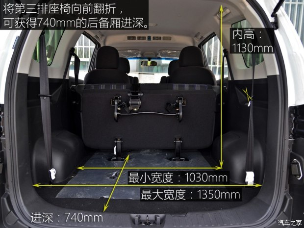 后备厢方面,凯翼V3后备厢最大宽度是四款车型中最大的,在高度方面也是相对较高的。不过,第三排座椅仅支持整体放倒,在后备厢的灵活性方面略显一般。