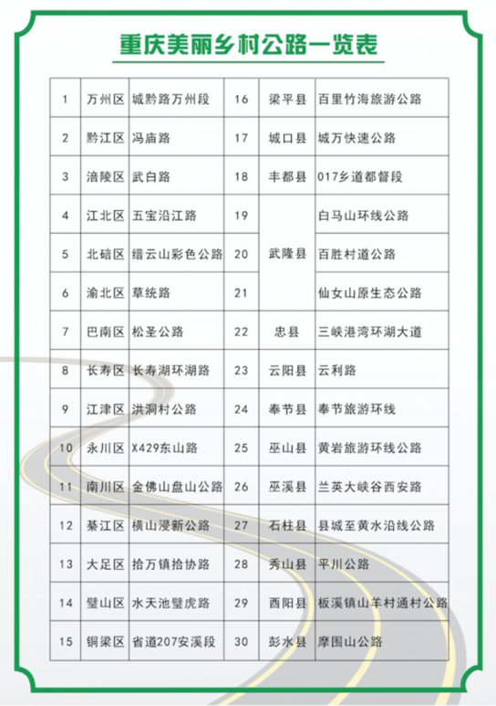 重庆美丽乡村公路一览表。重庆市地理信息中心供图 华龙网 发
