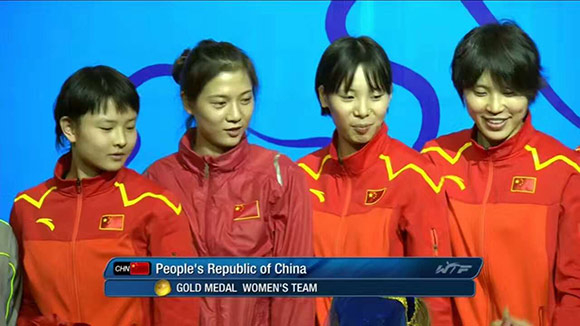 中国女团拿下跆拳道世界杯冠军 重庆妹子周美玲首次参赛