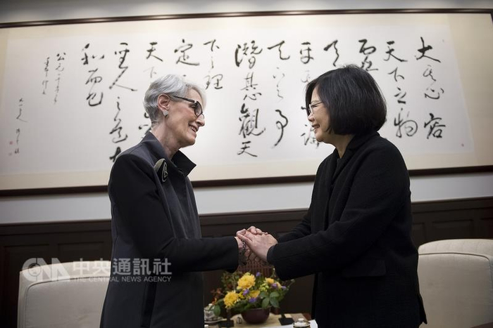 台湾地区领导人蔡英文15日接见美国国务院前副国务卿温迪·谢尔曼