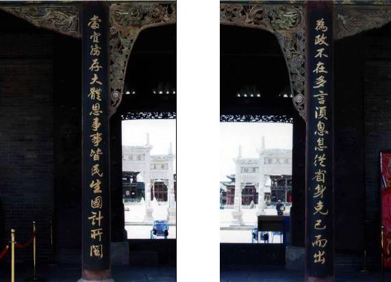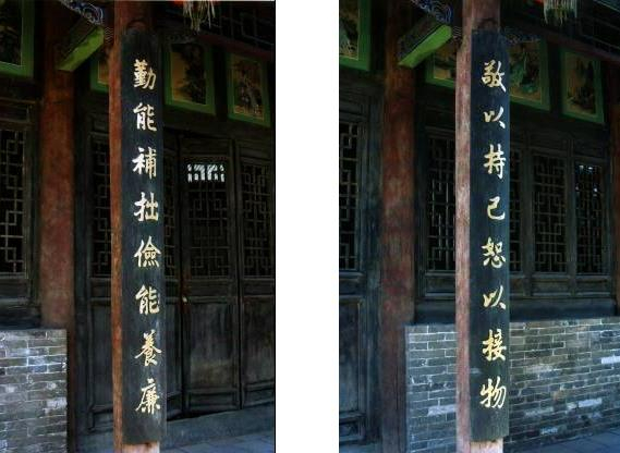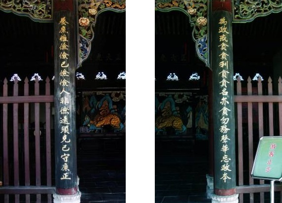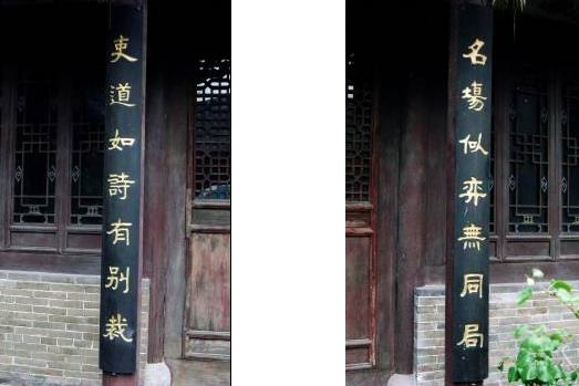 此联挂在县衙五堂东廊房,和不少县衙楹联不同,不是爱憎分明褒贬如刀而是只是议论。议题是“名场”和“吏道”,即“官场”,结论是“如诗”、“似奕”——从来没有相同的局势。