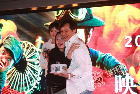 华龙网12月24日16时讯(记者 李袅)由成龙领衔,黄子韬、王凯加盟主演的动作喜剧电影《铁道飞虎》正在热映中。为了这部获得奥斯卡终身成就奖后首部公映的电影,成龙没有一丝倦怠,昨天还在沈阳,今天又带着“龙女郎”张蓝心奔走在重庆主城的各大影城,一口气要跑6个小时,好几站还兴致不错地唱起了歌。