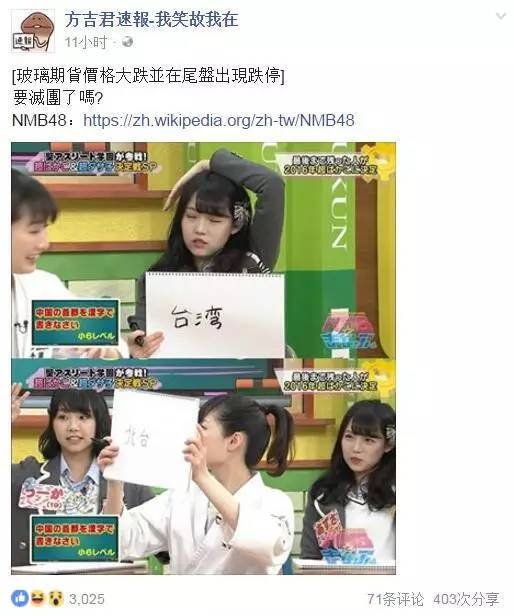 日本女团称中国首都是台湾 台湾网友high啥呢