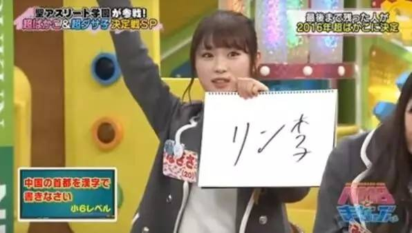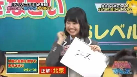 12月22日,在日本西电视台一档名为《NMB和学习君》节目中,主持人要求该女团成员“用汉字写出中国首都在哪里”,这一环节是评选年度“笨蛋代表”,答对的人就可以顺利逃出。