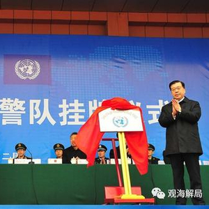 据新华社报道,近日,经国务院和中央军委批准,公安部常备维和警队在山东省东营市挂牌成立。公安部部长助理王俭出席仪式并为警队揭牌、授旗。