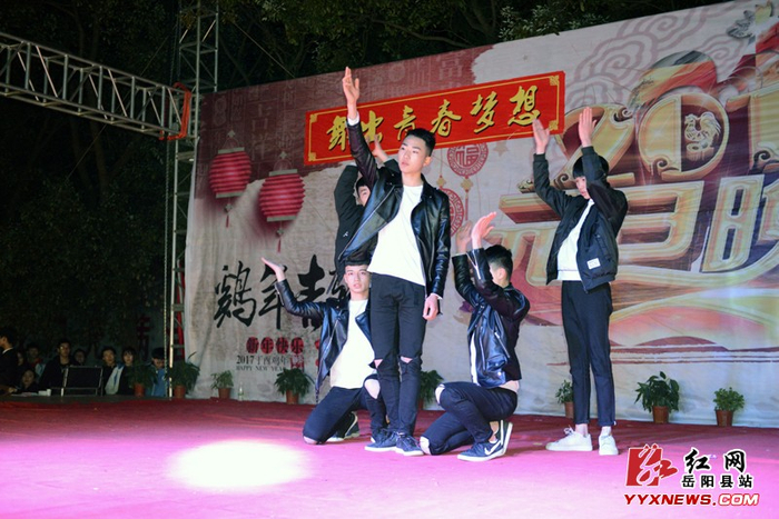 红网岳阳县分站12月30日讯(分站记者 许伟军 通讯员 汪建军)12月28日晚,湖南省岳阳县三中校园内灯光璀璨、星光闪耀,“舞动青春梦想 再创三中辉煌”2017年元旦文艺晚会正在这里举行,冬日的寒意丝毫不能影响同学们对文艺汇演的期盼和热情,掌声、笑声、欢呼声沸腾了整个篮球场,2000余名师生、家长观看了演出。