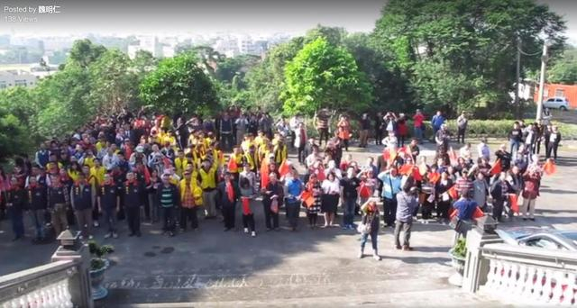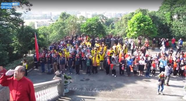 从视频中可见,不少台湾民众参加了升旗,在台下挥舞旗帜,唱《义勇军进行曲》。