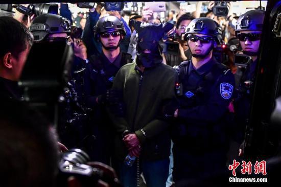 14时41分,戴上头套、起身,在左右两侧荷枪实弹的特警押解下,逃亡21年的陈恂敏终于现身,走出了列车。
