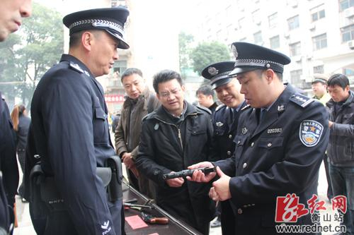 民警现场演示枪械使用规范。