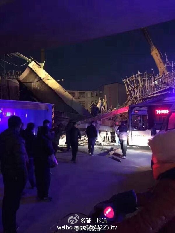 事发地段位于当地沙口路南向东转弯匝道,发生坍塌的立交桥为农业路高架铁路代建段,事故系旧桥拆除时支架坍塌引起的,支架连同被拆旧桥一并坍塌。