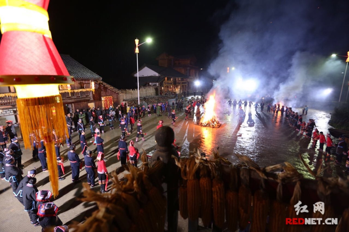 夜幕降临,庙子源村民围着火堆跳起了篝火舞。