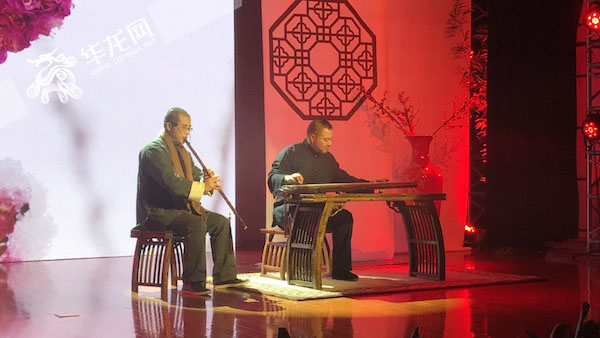 金蔚(右)现场演奏。 首席记者 黄军 摄华龙网1月14日16时45分讯(首席记者 黄军 实习生 冯司宇)“能够现场听到金老师的演奏,真是太幸运了!”今(14)日下午,“凤鸣春晓”新春古琴雅集在重庆中国三峡博物馆学术报告厅举行。曾在G20杭州峰会上演奏的中国著名古琴家金蔚亲临现场,一曲《梅花三弄》让现场观众听得如痴如醉。