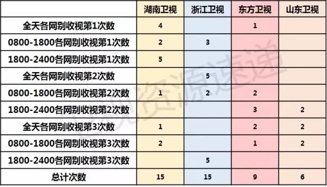 浙江卫视收视相对较稳定,全天各网别收视均排名第二,各网别主要时段取得TOP3的次数为15次。