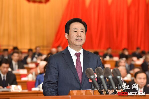 许达哲说,过去一年,在党中央、国务院坚强领导下,按照省委决策部署,我们主动适应把握引领经济发展新常态,坚持稳中求进工作总基调,着力推进供给侧结构性改革,着力加强保障和改善民生工作,着力推进农业现代化,较好地完成了全年任务。据预计,全省地区生产总值增长8%左右,固定资产投资增长13.8%,社会消费品零售总额增长11.7%,一般公共预算收入增长6%。全省经济社会保持平稳健康发展,实现了“十三五”良好开局。经济总量首次突破3万亿元,达到3.1万亿元,居全国第九位。长株潭获批创建“中国制造2025”试点示范城市群,湘江新区列为国家级双创基地。长沙磁浮和地铁1号线、长株潭城铁正式通车营运;黄花机场旅客吞吐量超过2000万人次,居中部首位;高速公路通车里程突破6000公里,居全国前列。年度民生发展指标全面完成,减少贫困人口125万。湘、资、沅、澧四水流域水质总体为优;全省平均优良天数达到293天。