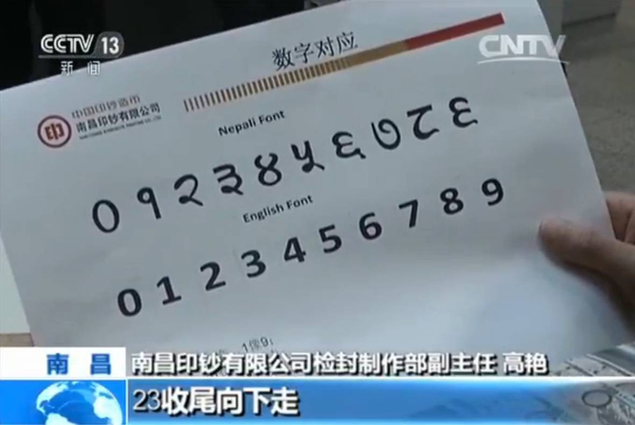 尼泊尔钞票和我们人民币钞票有很大的不一样,最主要的区别在冠字和号码。冠字号码就像每张钞票的“身份证”,为了保证号码的唯一性,检查号码这个环节十分重要。但是尼泊尔文的数字和阿拉伯数字差别巨大,给识别工作带来了很大困难。