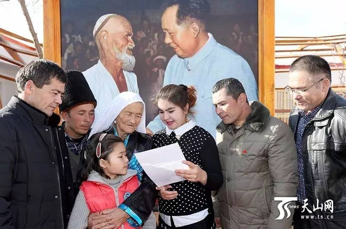 图为1月13日,托乎提汗·库尔班一家人围在一起激动地阅读习近平总书记的回信。新疆经济报记者 宋君/摄