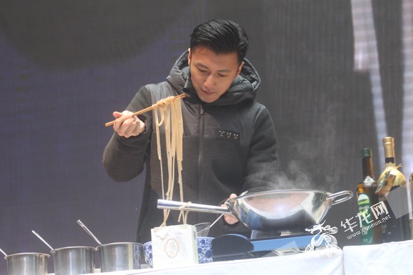 华龙网1月21日14时30分讯(记者 李袅)美食电影向来是吃货们的心头好,既有美食又有颜值的电影会是什么样呢?由葛优、谢霆锋、唐嫣主演的《决战食神》将于2月10日元宵节档上映,今(21)日,谢霆锋和唐嫣现身重庆宣传新片。此前曾到山城学习制作地道美食的谢霆锋,还在现场跟唐嫣一起为粉丝煮起了酸辣粉,果然是标准的大厨范儿。